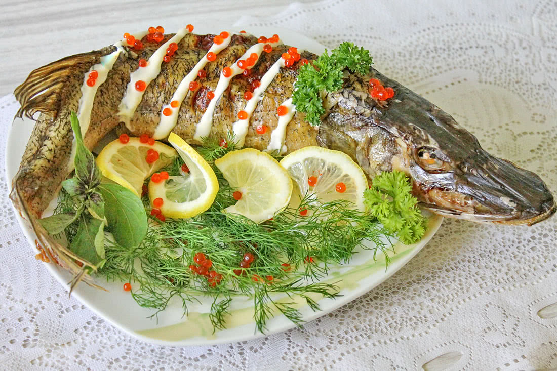 Свежую щуку (можно налима или судака) осторожно очистить от чешуи, удалить жабры, разрезать вдоль брюшка, вынуть внутренности, промыть. Затем от кожи осторожно отделить мякоть. Мякоть пропустить через мясорубку вместе с булкой, замоченной в молоке, полученный фарш посолить, поперчить, снова пропустить через мясорубку, добавить сливочное масло, рубленое яйцо и тёртый чеснок. Если фарш получился густой, его разбавить молоком или рыбным бульоном. Промытую кожу щуки вместе с головой положить на спину и заполнить подготовленным фаршем. Затем брюшко зашить белой ниткой и придать рыбе прежнюю форму.