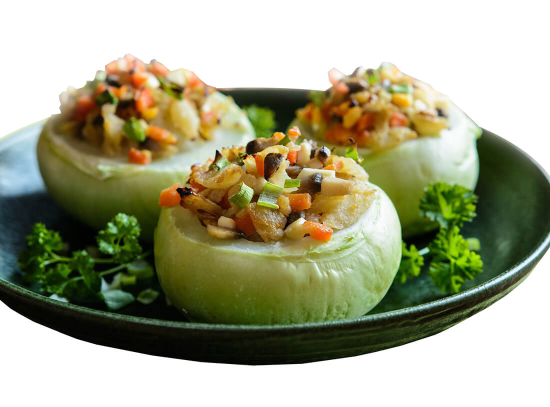 Очищенную репу сварить до полуготовности. Затем вынуть ложкой или вилкой сердцевину и припустить её с маслом. Сварить манную кашу, соединить её с припущенной репой, добавить топлёную сметану, начинить репу этим фаршем, сверху обмазать яйцом.