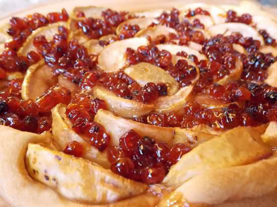 Из опарного теста раскатать лепёшки. Ягоды рябины отделить от веточек, промыть и поставить тушить. Солод заварить, поставить в печь, чтобы он упрел, затем соединить с рябиной, добавить немного сахара. Начинка должна быть густой. На одну половину раскатанной лепёшки положить начинку, другой закрыть и края защипать верёвочкой, поставить на расстойку. Выпекать в печи или духовке.