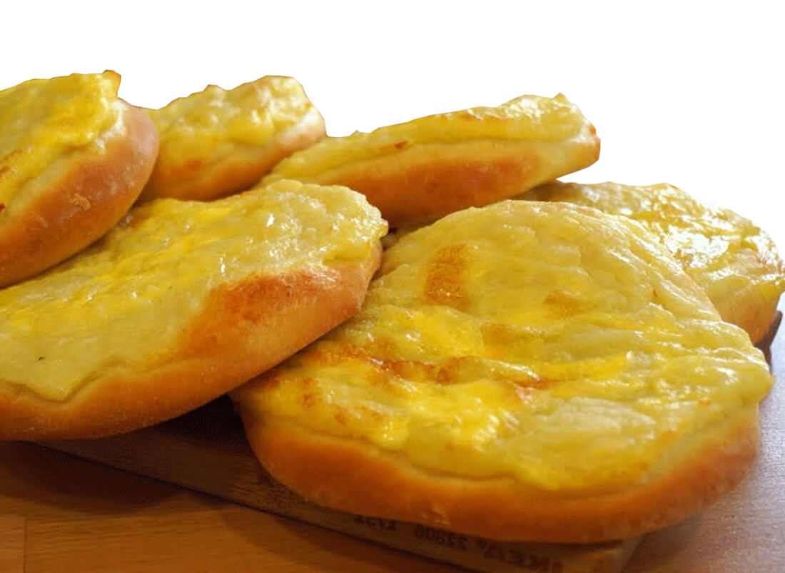 Отварить картофель, очистить и растолочь в горячем виде до однородной массы, развести горячим молоком, добавить масло, яйца, соль. Опарное сдобное тесто разделить на кусочки, раскатать их лепёшкой, выложить на смазанный маслом противень и дать подняться. Затем положить на лепёшки ровным слоем картофельную начинку, смазать яйцом и выпекать.