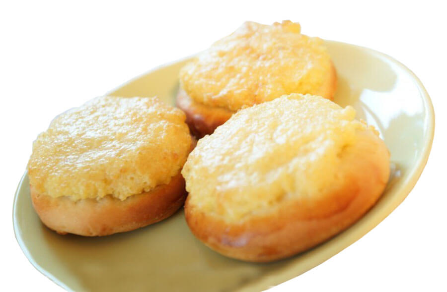 Из дрожжевого сдобного теста раскатать круглые шарики весом 65 г. После небольшой расстойки раскатать из них лепёшки диаметром 10 см и сложить на смазанный жиром противень. Сделать углубления, заполнить их наливкой, дать полную расстойку и выпекать.