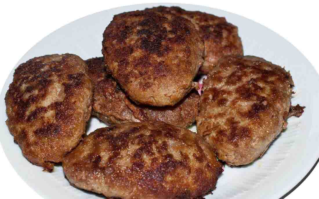 Говядину и свинину пропустить через мясорубку вместе с репчатым луком, посолить, поперчить, тщательно перемешать до получения однородной массы, добавить молоко или холодную воду. Разделить массу на котлеты, запанировать в сухарях и обжарить с обеих сторон. Затем каждую котлету смазать взбитым до пены яичным белком и снова обжарить.