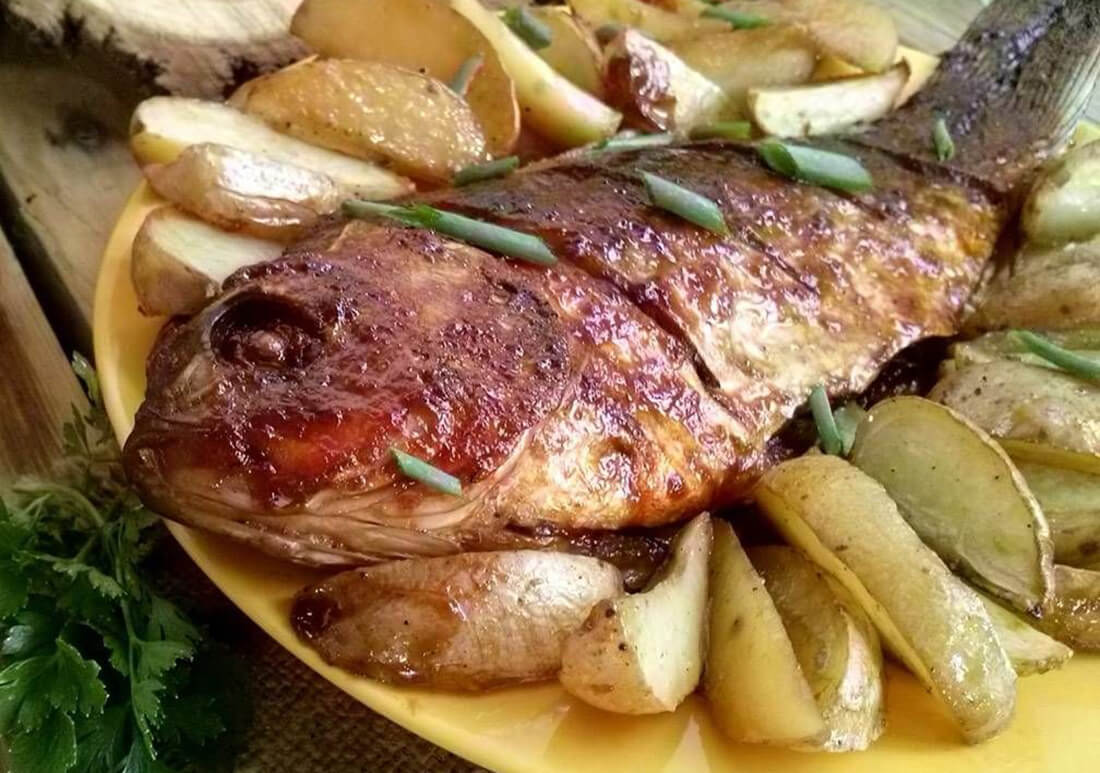 Сазана средней величины очистить, разрезать на части. Осторожно отделить мякоть вместе с кожей, оставшуюся мякоть снять с костей, пропустить через мясорубку вместе с замоченным в молоке хлебом и спассерованным репчатым луком. Всё хорошо перемешать и ещё раз пропустить через мясорубку.