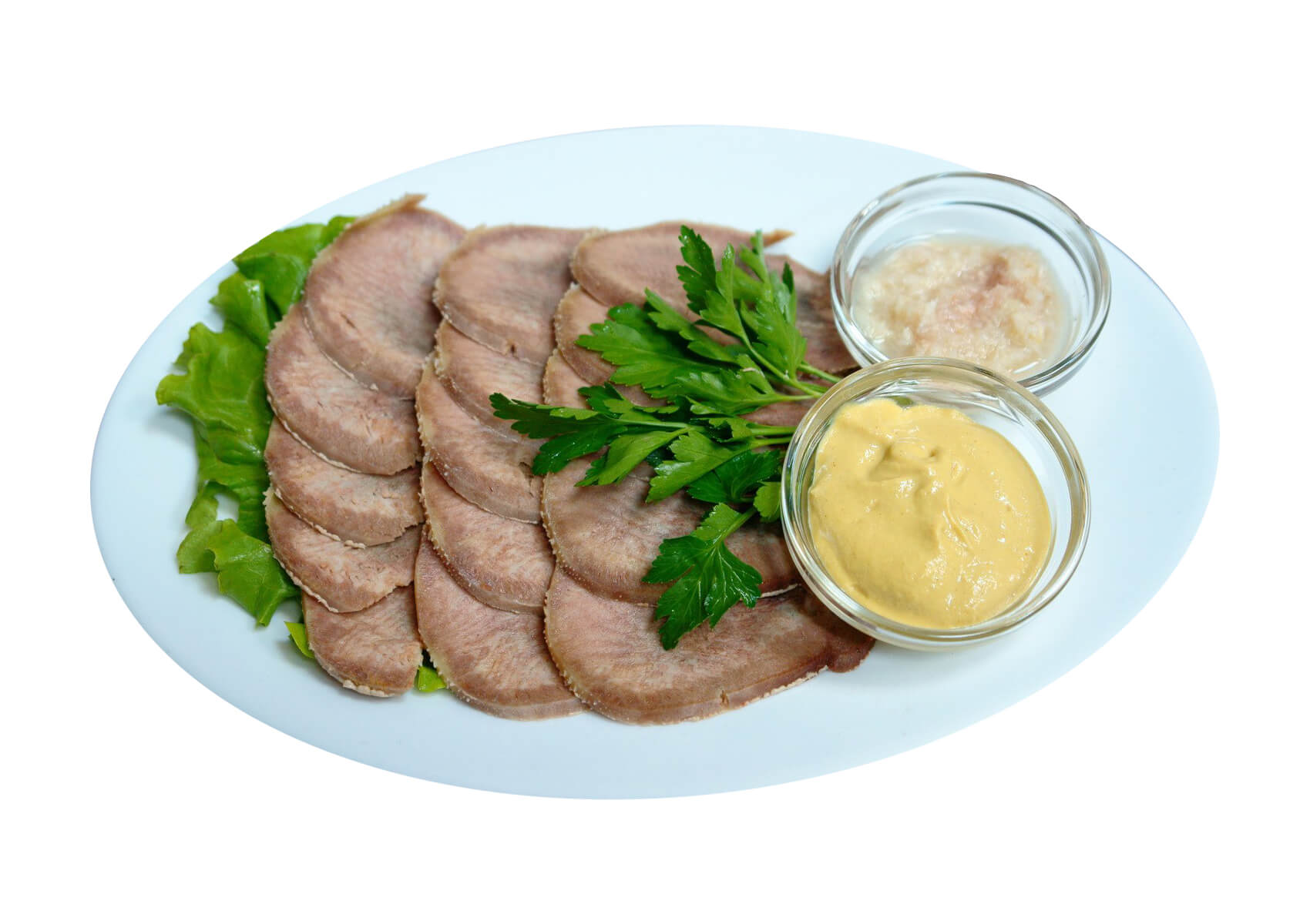 Язык отварной с соусом
