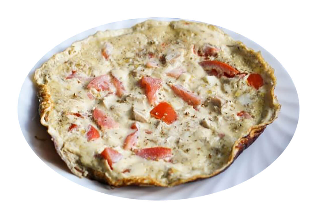 Окорок свиной нарезать мелкими кубиками и обжарить вместе с репчатым луком. В кастрюлю разбить яйцо, добавить молоко, соль по вкусу, тщательно взбить. На раскалённую сковороду, смазанную жиром, положить нарезанный окорок, залить омлетной массой, дать закипеть и поставить в духовку для запекания. Готовую селянку вынуть, разрезать на 2-4 порции, сверху полить маслом, посыпать зеленью.
